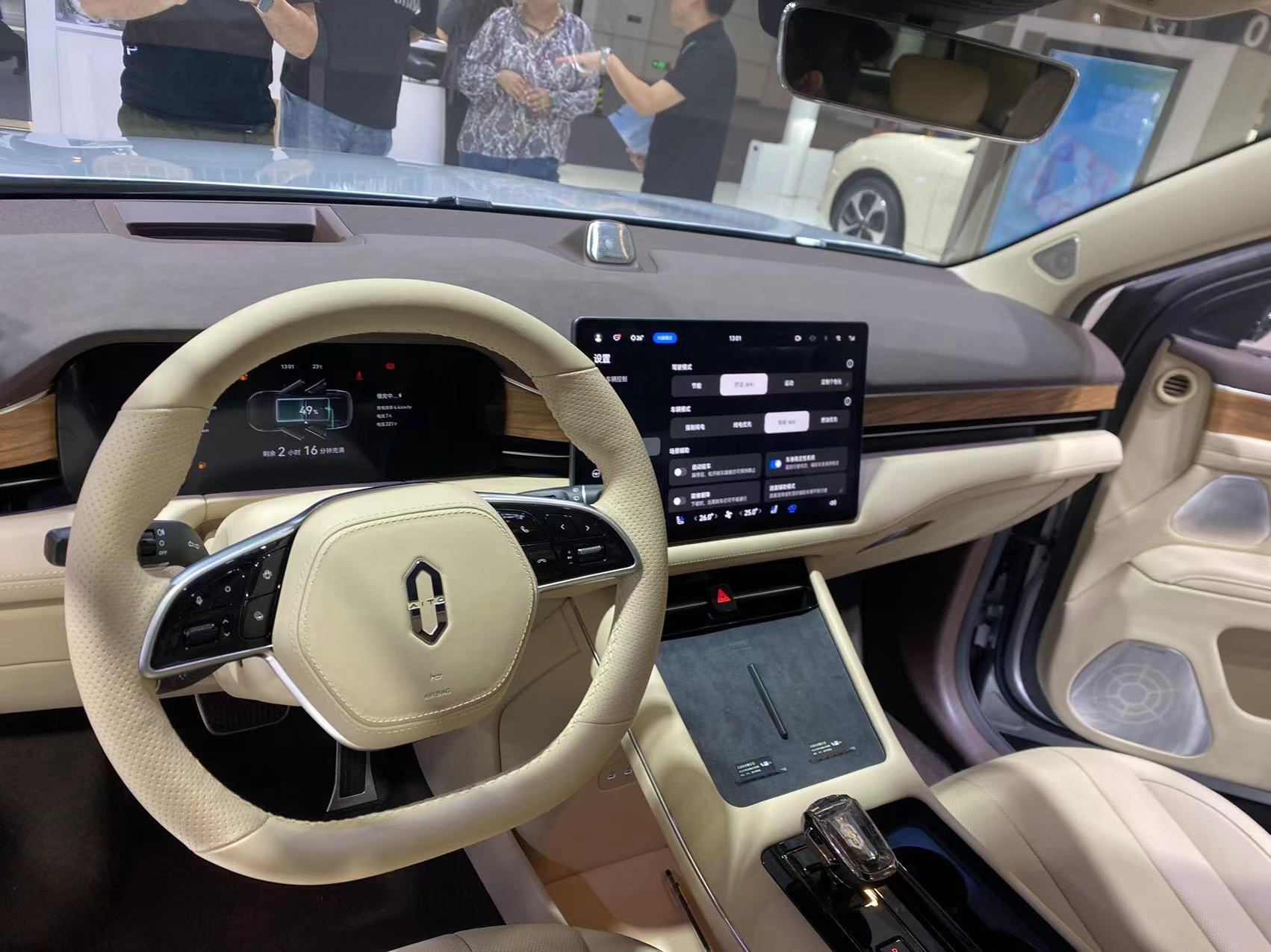 進入車內(nèi),新車極簡的設(shè)計風格依舊充滿時尚氣息,其中僅針對方向盤的配色進行了微調(diào)。10.25英寸曲面全液晶儀表盤和15.6英寸中控屏取代了絕大部分的物理實體按鈕,從而也彰顯出不俗的科技氛圍。此外,該車將提供3種內(nèi)飾配色方案可供用戶選擇,分別為韶華杏、琥珀棕和極夜黑。