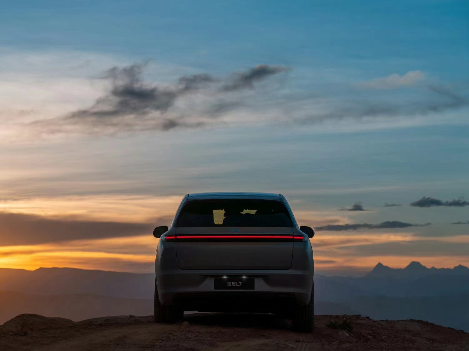 相比前臉,理想L7的尾部造型更加飽滿,貫穿式尾燈搭配上方擾流板的設(shè)計,使得整車更加動感。