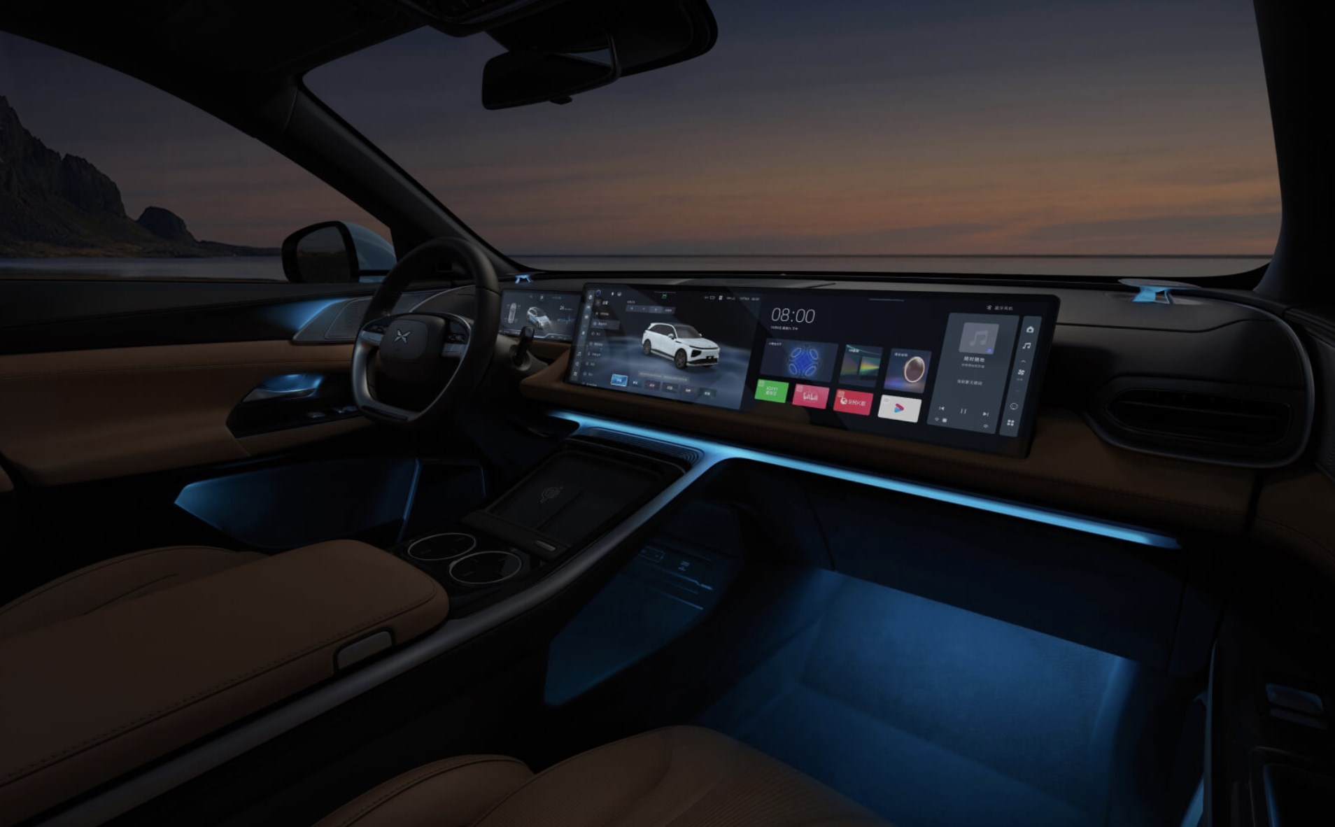 內(nèi)飾方面,小鵬G9的內(nèi)飾采用環(huán)抱式座艙設(shè)計,10.25英寸全液晶儀表搭配兩塊14.96英寸大屏,讓中控區(qū)域?qū)哟胃蟹置?,盡顯科技感。另外,座艙內(nèi)的用料也值得一提,座艙內(nèi)95%面積都使用軟包覆蓋,且大面積真皮及PU革材質(zhì)均獲得OEKO-TEX認證,達到嬰兒接觸級的健康環(huán)保。
