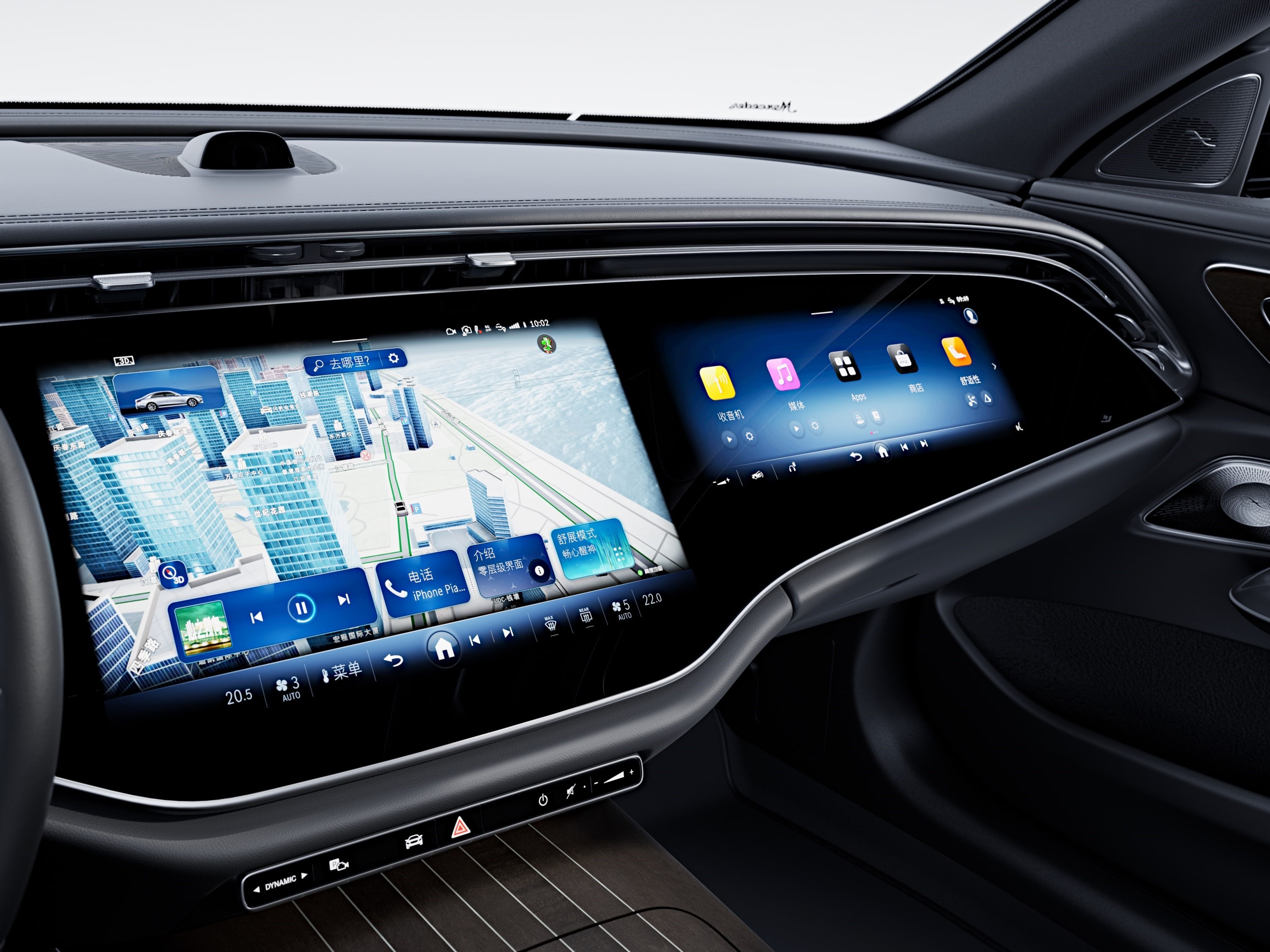 進(jìn)入全新奔馳E級車內(nèi),可以說豪華+科技風(fēng)相碰撞,整體氛圍非常吸睛,而車內(nèi)最耀眼的部分自然是全新大尺寸MBUX超級屏,這塊屏幕首發(fā)搭載了第三代MBUX智能人機交互系統(tǒng),同時也是豪華品牌中首款搭載高通8295芯片的車型,從而實現(xiàn)更多第三方車載應(yīng)用的搭載,例如抖音、玩游戲等等。此外,全新奔馳E級新增自拍攝像頭,支持人臉識別以及場景模式,便于用戶通過Zoom、Webex等拍攝照片或參加視頻會議(支持5G網(wǎng)絡(luò))
